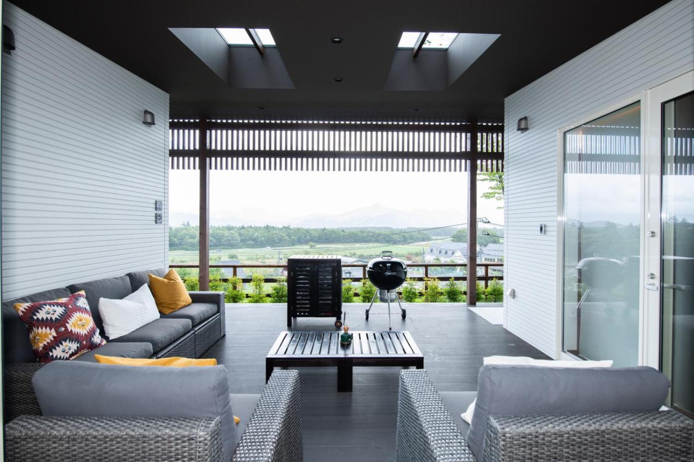 Holiday Home. Featuring a private entrance, this air-conditioned holiday home consists of 1 living room, 2 separate bedrooms and 1 bathroom with a bath and a shower. Guests will find a stovetop, a refrigerator, kitchenware and an oven in the fully equipped kitchen. The holiday home also offers a barbecue. The holiday home provides a washing machine, tatami, soundproof walls, a flat-screen TV with streaming services, as well as mountain views. The unit offers 3 beds and 3 futons.