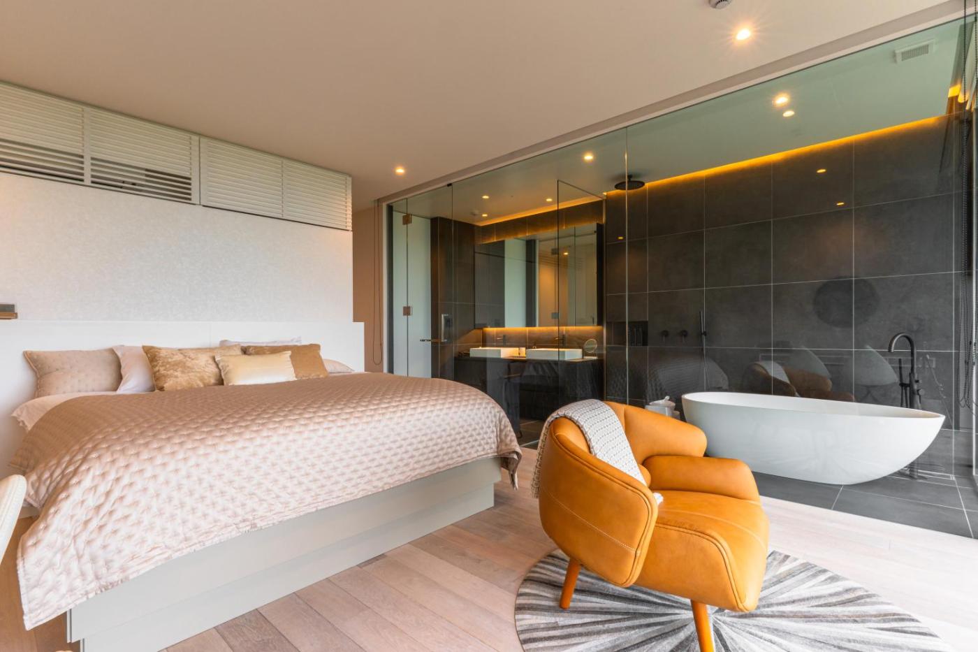 Two-Bedroom Villa. Guests will have a special experience as this villa provides a sauna and a fireplace. This spacious villa includes 1 living room, 2 separate bedrooms and 2 bathrooms with a bath and free toiletries. In the well-fitted kitchen, guests will find a stovetop, a refrigerator, a dishwasher and kitchenware. The villa offers air conditioning, a washing machine, a sofa, heating, as well as a flat-screen TV. The unit has 2 beds.