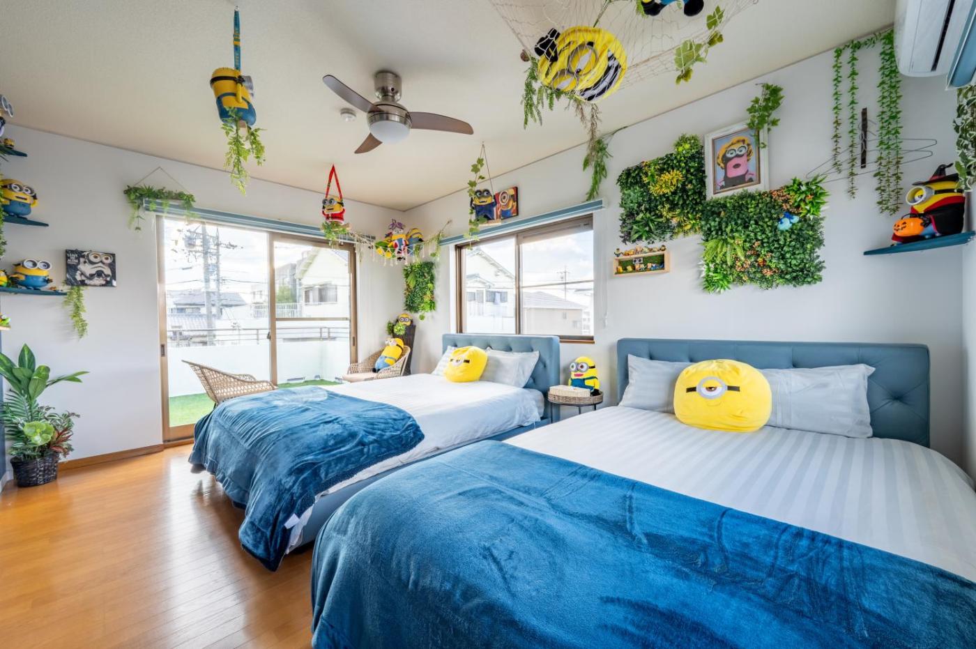 Three-Bedroom Villa. The air-conditioned villa has 3 bedrooms and 1 bathroom with a bath and a shower. Guests will find a stovetop, a refrigerator, kitchenware and a microwave in the well-fitted kitchen. The villa also comes with a barbecue. The villa features a flat-screen TV with streaming services, a washing machine, tatami, a tea and coffee maker as well as garden views. The unit has 6 beds and 3 futons.
