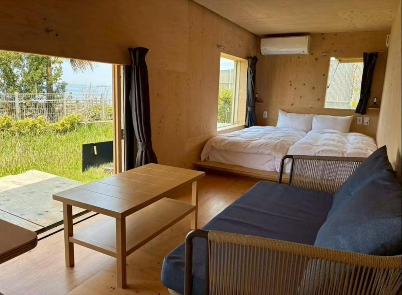 Glamping Quadruple Room (No View). The quadruple room features air conditioning, a tea and coffee maker, a safe deposit box, a sofa, as well as a flat-screen TV. The unit has 4 beds. ;