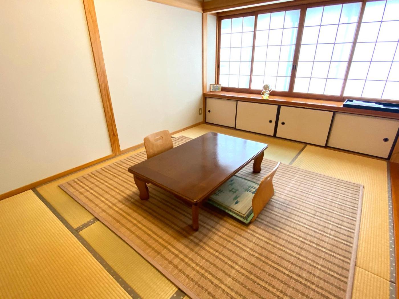 Japanese Style Room with Shared Bathroom. The triple room features air conditioning, tatami, as well as a shared bathroom boasting a hairdryer and slippers. The triple room provides a TV, an electric kettle, yukata, heating as well as mountain views. The unit has 3 futons. ;