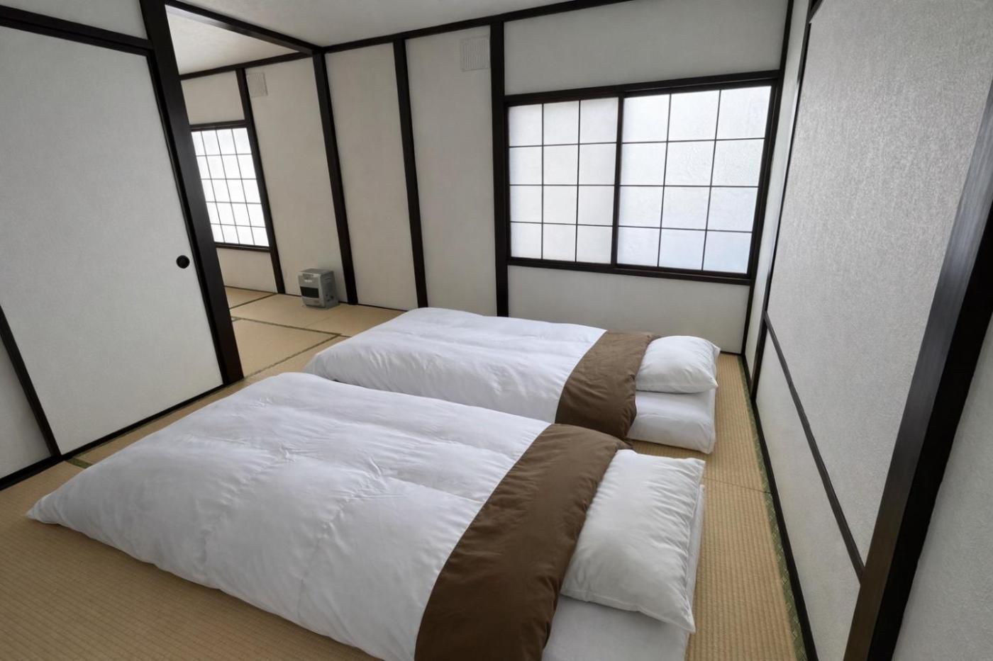 Three-Bedroom House. The air-conditioned holiday home features 3 bedrooms and 1 bathroom with a bath and a shower. The fully equipped kitchen has a stovetop, a refrigerator, kitchenware and an oven. The holiday home offers a washing machine, tatami, a tea and coffee maker, a game console, as well as a flat-screen TV. The unit offers 2 beds and 4 futons.